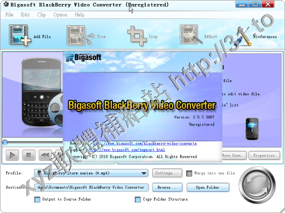 • Bigasoft BlackBerry Video Converter v3.5.4.4287 英文中文正式版(媒體轉換軟體)